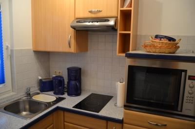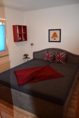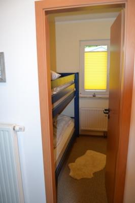 Das eine Schlafzimmer ist mit einem Doppelbett ausgestattet. Das zweite Schlafzimmer verfügt über ein Etagenbett. An die beiden Schlafzimmer grenzt direkt der Flur, über den die Küche und das Badezimmer erreicht wird. Wäschepakete können gebucht werden. Für 4 Personen ist somit ausreichend Platz vorhanden.