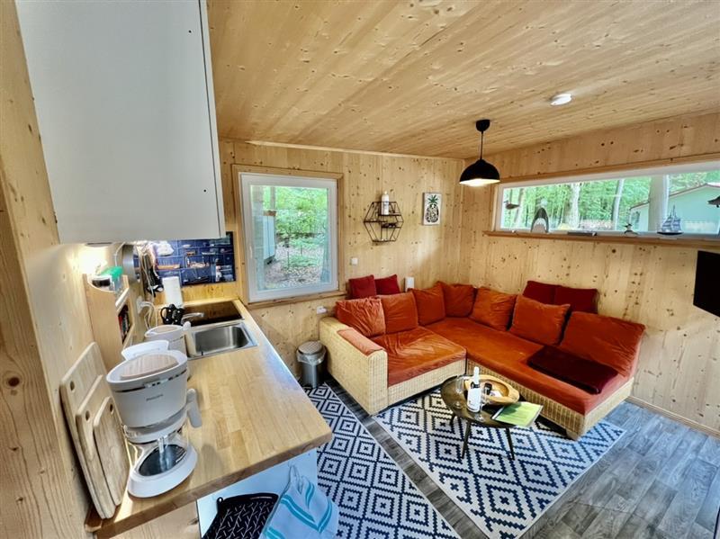 Der Wohn- und Kochbereich ist mit einer Eck- Couch, welche mit einem zusätzlichen Würfel zu einer 190 cm x 190 cm Liegewiese oder Schlafcouch umgewandelt werden kann, einem kleinen Tisch und einem 32 Zoll Flachbildschirm ausgestattet. Die Küchenzeile besteht aus drei Oberschränken, zwei Unterschränken einem Kühlschrank mit einem kleinen integrierten Gefrierschrank, einem Flaschenregal, einer Spüle mit Warmwasser und einem Ceranfeld mit 4 Kochfeldern und ist mit einem Toaster, einem Wasserkocher, einer Kaffeemaschine, Kochmessern, Geschirr, Töpfen, Pfannen und allem, was der Lessness-Urlaub braucht, ausgestattet. Ein Schlafzimmer mit Doppelbett 180 x 200 cm und ein zweites Schlafzimmer mit einer Doppelschlafcouch 160 x200 cm und je einem Kleiderschrank sorgen für Ihren gesunden Schlaf und das Verstauen ihrer Kleidung. Ein Bad mit WC, Waschbecken, Raindance- Dusche und Warmwasser ist mit seinen Flußsteinen auf dem Boden eine wohltuende Fußmassage. Insgesamt ist der Bungalow für 4 Menschen gedacht, in Ausnahmefällen und in Absprache mit dem Campingplatz können auch ein drittes und viertes Kind übernachten.