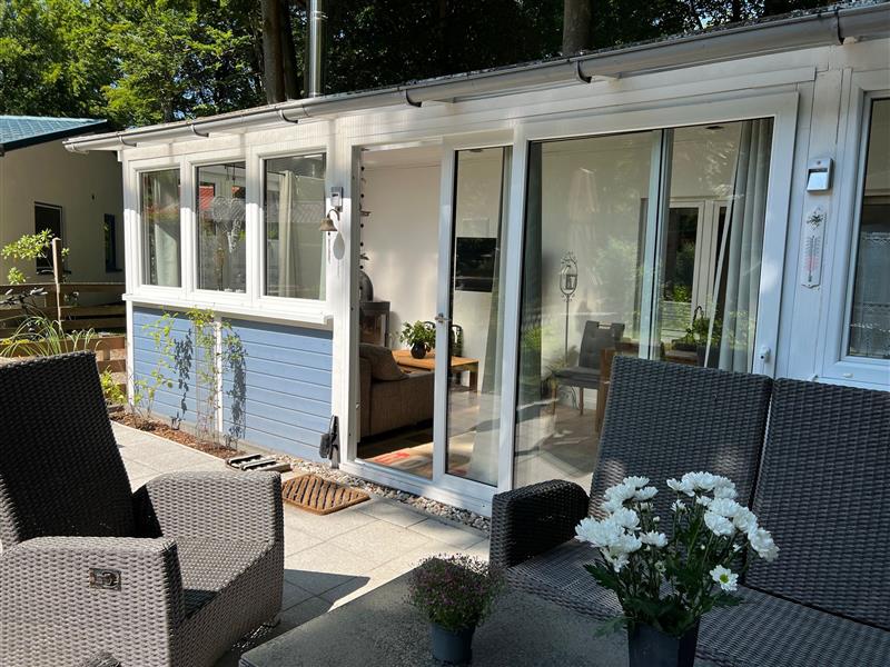 Das gemütliche Häuschen (45qm Wohnfläche) ist mit einer hellen Wohnküche (voll ausgestattet mit Kaffeemaschine und kleinen Ofen), zwei Schlafzimmern (ein größeres mit direktem Zugang zum Bad und ein kleines) und einem Bad (Durchgang durch ein Schlafzimmer) ausgestattet. Nach einem Strandspaziergang bei stürmischen Wetter, kann man sich am Kamin aufwärmen. Bei warmen Wetter lässt es sich auf der großen hellen Terrasse mit gemütlichen Sitzmöbeln, Sonnenschirm und Grill gut aushalten.