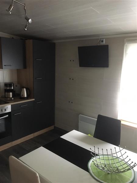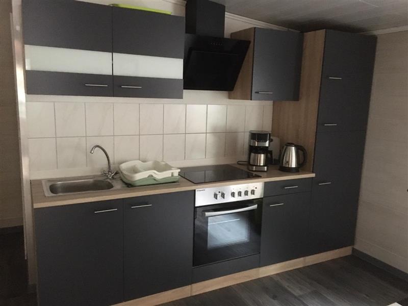 • grosser Essbereich mit Bestuhlung, Elektroherd mit Backofen, Kühlschrank, Kaffeemaschine, Toaster, Wasserkocher, Mikrowelle, ausreichend Geschirr, TV