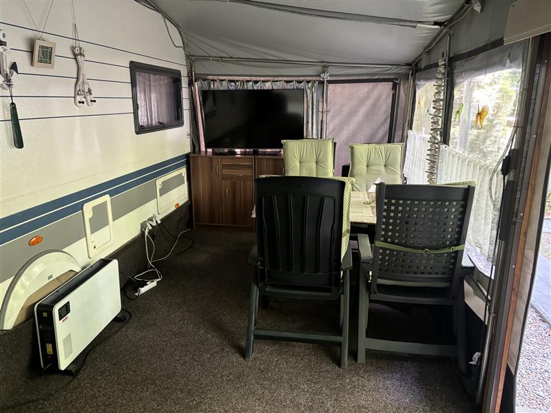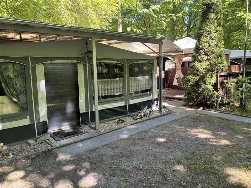 Für Ihren Urlaub steht hier ein sehr gepflegter Wohnwagen mit Vorzelt und Pavillon auf einem umzäunten Grundstück in einem ruhigeren Teil der Ferienanlage zur Verfügung.