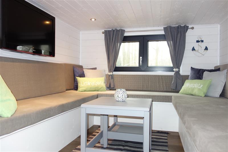 Eine U-förmige Sitzecke mit kleinem Tisch in der Mitte und einem Flachbildfernseher steht Ihnen für die gemütlichen Momente zur Verfügung.