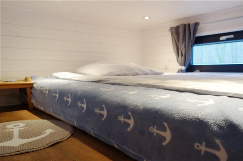 Darüber auf der Empore befindet sich der offene Schlafbereich mit kleinem Fenster. Der Schlafbereich ist über eine Leiter zu erreichen.
