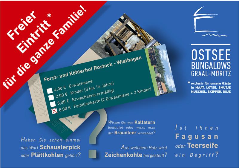 EXCLUSIV für unsere Gäste: Wir hinterlegen für Sie im Bungalow eine Familienkarte zum freien Eintritt in den Forst- und Köhlerhof Wiethagen mit seiner in Mitteleuropa einmaligen Teerschwelerei, einem Märchenwald und viel Wissenswertem für Alt und Jung: www.koehlerhof-wiethagen.de