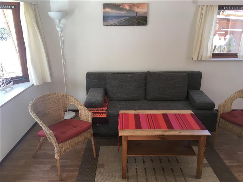 Es handelt sich um einen ca. 45 qm großen Bungalow. Es gibt ein Schlafzimmer mit einem Doppelbett, ein weiteres Zimmer mit einem Etagenbett. Die Küche ist offen zum Wohnbereich gestaltet. Zusätzlich gibt es noch ein Esszimmer. Das Badezimmer ist mit einer neuen Dusche ausgestattet.