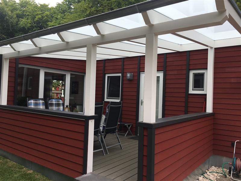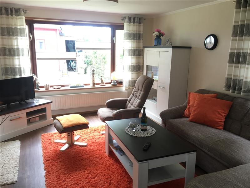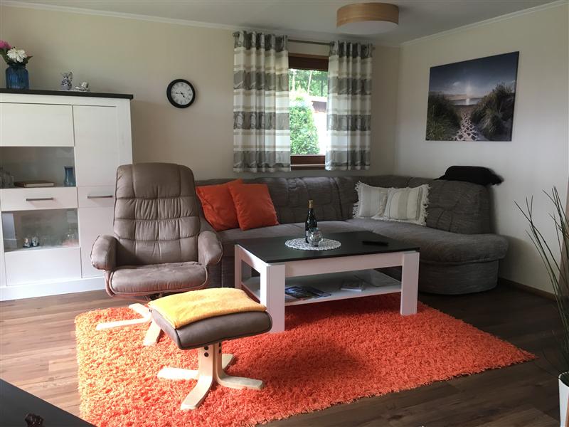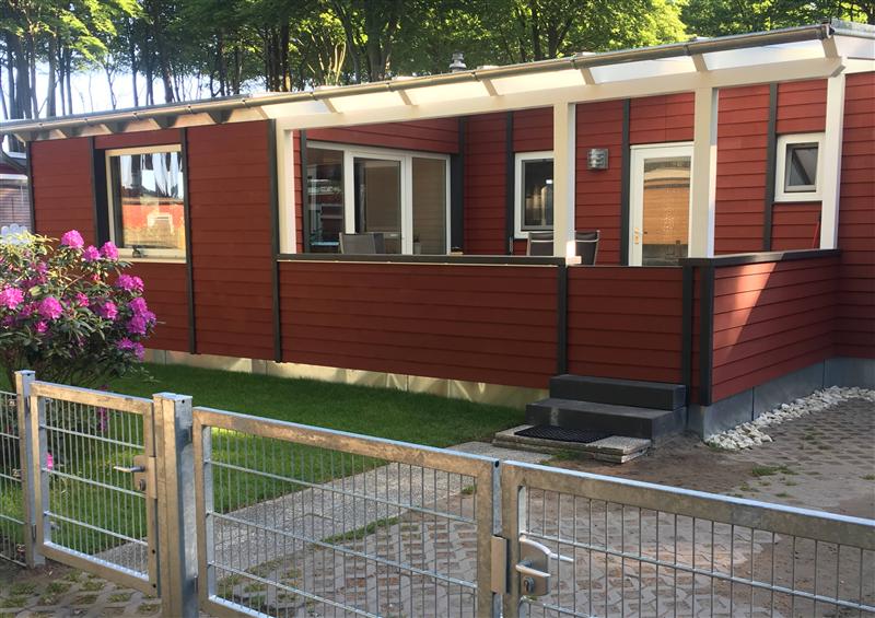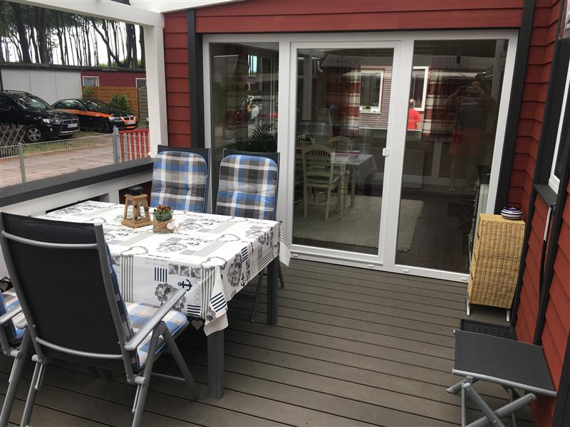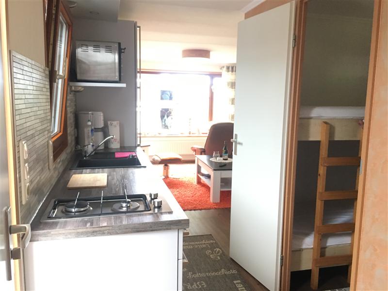 2 Schlafzimmer mit 4 Schlafplätzen, eine Küchenzeile, ein Wohnzimmer mit Erkner, einer großen überdachten Terrasse.