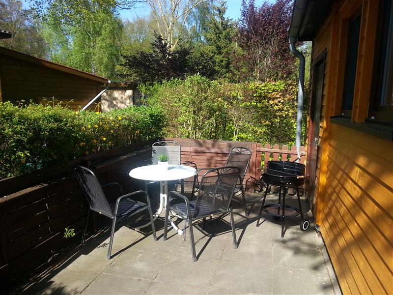 **Außenbereich**: Terrasse mit schönen Sitzmöbeln und einem Holzkohlegrill, PKW Stellplatz, Gartenhäuschen mit Strandutensilien für Groß und Klein (Abstellen von Fahrrädern), Buddelkasten
