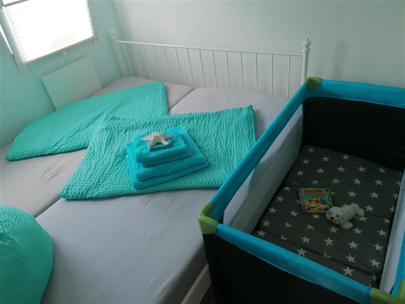 auf Sie (max. 2 Erw., 2 Kinder) wartet ein 40 qm großer Bungalow mit einem Schlafzimmer, einem Kinderzimmer, einem Wohnzimmer mit Essbereich, einer Küche und einem Bad mit Dusche/WC.