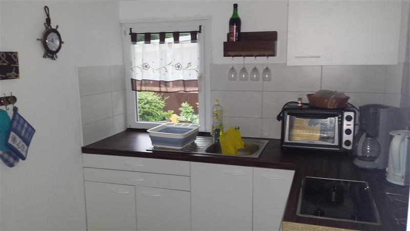 Küche: voll ausgestattet mit Geschirr, E-Herd mit 2-Herdplatten, Kühlschrank inkl. kleinem Eisfach, kleiner Backofen, Kaffeemaschine, Wasserkocher, Toaster, Putzmittel