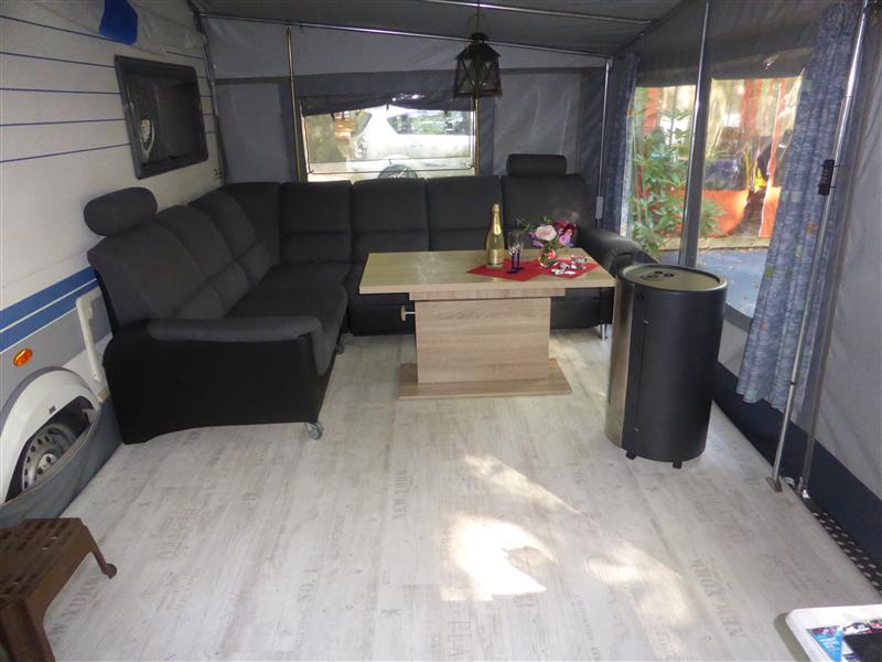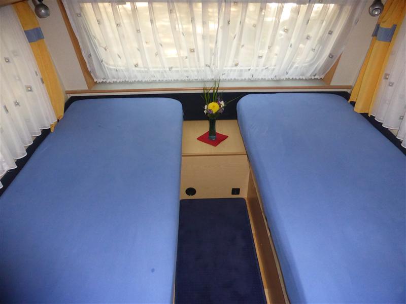 - Abgetrennter Schlafraum (2 Einzelbetten oder Doppelbett)
